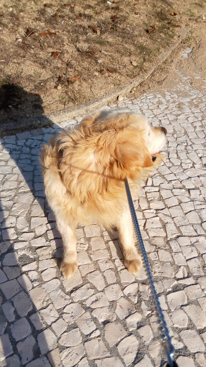 O Spike adora passear, mas também adora ser ele a definir o caminho. E, quando não quer seguir para o mesmo lado que nós, senta-se ou deita-se, e espera um pouco, para ver se nos faz mudar de ideias.