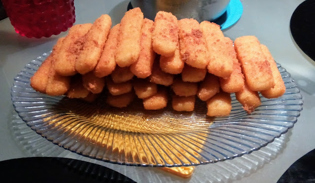 Mas, como não é, trata-se simplesmente na travessa de barrinhas de peixe para o jantar da família. Isto antes de desaparecerem rapidamente...
