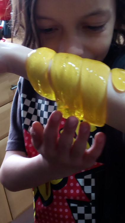O Mini quis logo experimentar. Aquilo não cola como a plasticina, mas mete nojo...