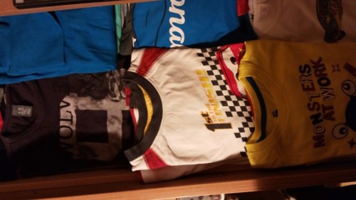 A roupa que retiro para a estação da época que inicia é guardada em gavetas ou nos guarda-fatos. A dos príncipes mais velhos é revista, nesta fase etária, facilmente deixam de gostar de uma peça, por isso, não vale a pena guardar coisas que não irão vestir. Das peças que já não querem vejo se algum dos outros (príncipes mais velhos) quer aquela peça, caso não queira será guardada para os príncipes mais novos. Aqui em casa muita roupa é reutilizada. Não vale a pena deitar roupa fora se poderá um dia mais tarde servir a outro príncipe. Há também peças de roupa que lhes deixaram de servir. A roupa não cresce, já os príncipes...