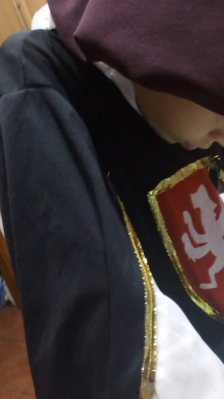 Ontem experimentámos, coloquei-lhe o chapéu que vai levar (comprado à uns anos na Feira Medieval em Santa Maria da Feira), mais a espada. Ainda faltam alguns elementos, mas amanhã teremos um cavaleiro a sair de casa, pronto para se divertir na escola.