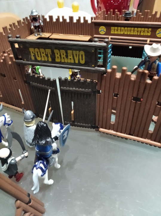 O pai pediu-me para voltar a montar o Forte Playmobil dele. E quem aproveitou a oportunidade? Os príncipes mais novos. Criam histórias com cavaleiros, piratas, cowboys,... vale tudo.