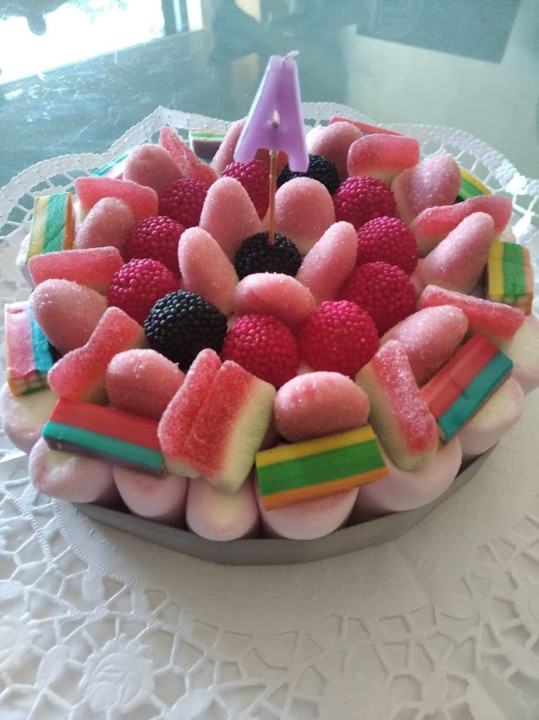 O Afonso, ainda sobre o seu aniversário, tinha pedido um bolo de 3 andares, com gomas. Mas explicámos que um bolo de 3 andares em gomas seriam gomas de mais.
