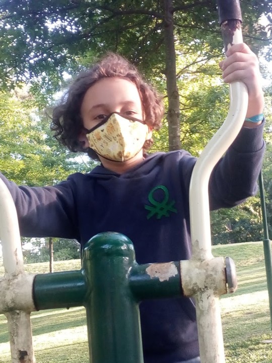 O Mini diz que não quer comer a manga. O pai pediu-lhe a manga.