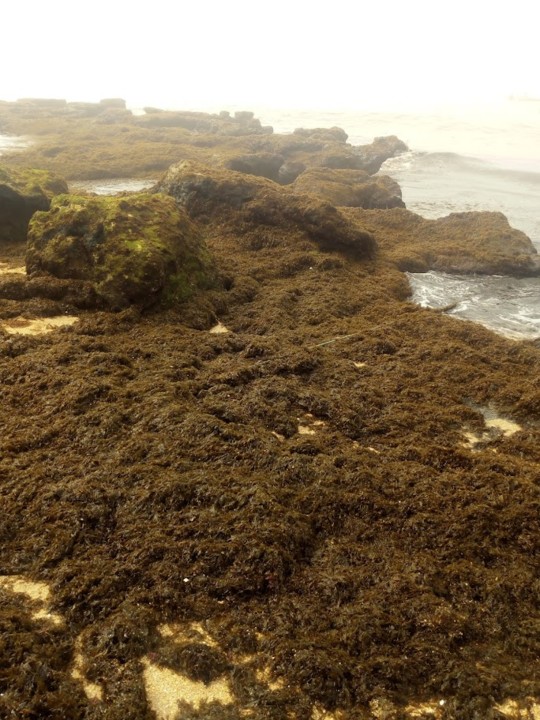 Este ano aconteceu um fenómeno no Carvoeiro (em grande parte da costa algarvia) que nunca tínhamos presenciado: algas, muitas algas, toneladas de algas. Por vezes para ir ao mar era complicado, restava uma pequena faixa junto às pedras para as pessoas puderem estar, sem estarem rodeadas de centenas de algas. Tudo dependia para onde a maré arrastasse aquele mar de algas.