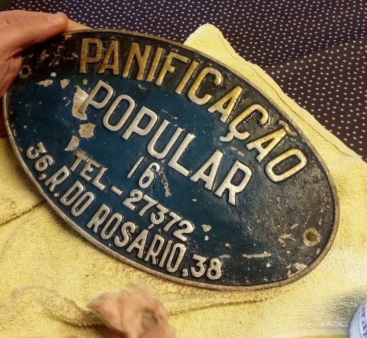 Um dia com algum sol, ontem, foi dia de Feira dos Usados cá no burgo. Não havia nada de especial (para nós, claro), até que chegámos a uma banca e chamei a atenção para umas placas ao maridão. Todas elas da Panificação Popular, mas com números diferentes. Escolhemos esta:
