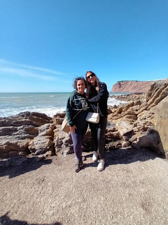 Eu a a minha sobrinha em São Martinho do Porto, com vista para o imenso Atlântico.
