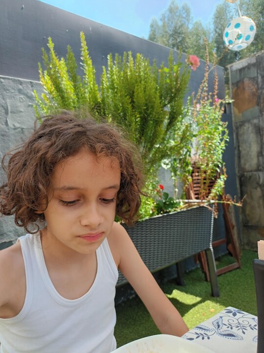 Nada como comer no quintal. O Mini todo feliz, mas mal acabou de comer abandonou-me. O dia quente, mas não tão quente como nos últimos dias, fez o momento agradável.
