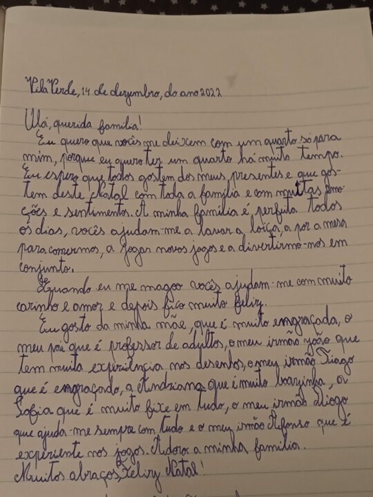 Carta à Família em dezembro 29, 2022 Obter link Facebook X Pinterest Email Outras aplicações A carta que o Mini escreveu à família pelo Natal: Comentários