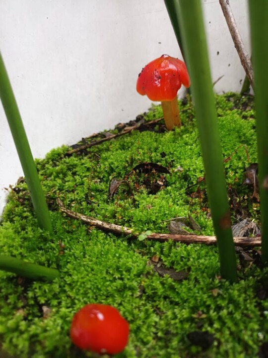 Ontem, o meu marido deu conta da presença destes pequenos cogumelos, num vaso no quintal.