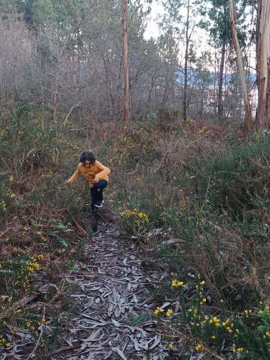 Vivemos numa vila, mas mais parece que vivemos no campo. Junto a casa temos um pinhal e à volta muitos campos. O pinhal é o sítio de eleição para passear a Eevee e os cães que tivemos antes dela. Por isso, um lugar muito frequentado por nós como família.