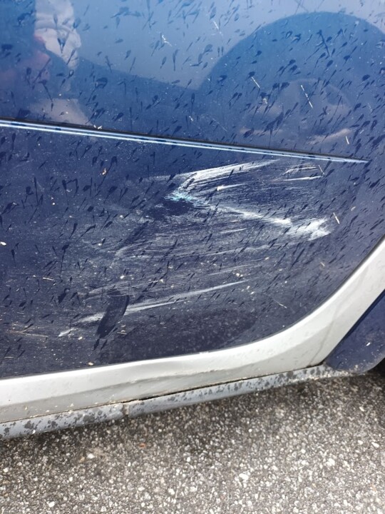 A semana passada, num dia de chuva, com o carro estacionado aqui na rua, alguém me fez uma amassadela enorme no carro.